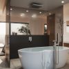 Master bedroom suite: With a complete private bathroom, elegant, which includes a freestanding bathtub and a walk-in shower, offering an atmosphere of luxury and comfort.