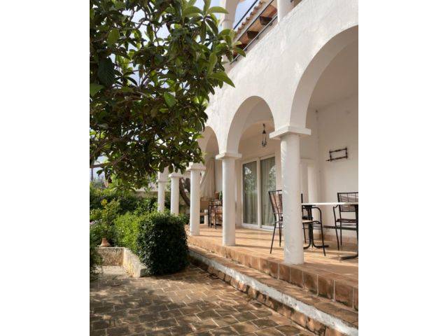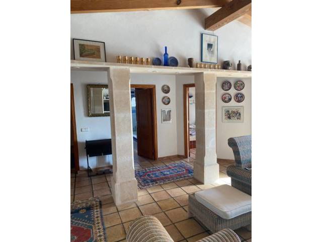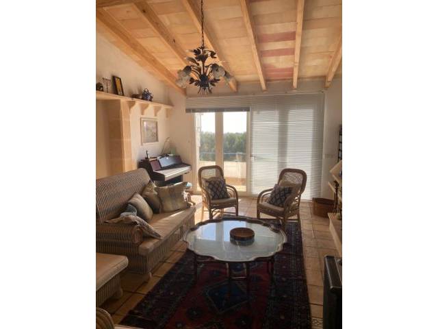 In a quiet location close to the beach is this semi-detached house with 155 sqm and patio, covered terrace, small garden, with views of the countryside to the mountains of Son Macia and in the distance... the sea.