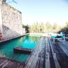 Automatic gate entrance, 2 swimming pools surrounded by lawn, terraces, BBQ and parking spaces, beautiful palm avenue. There is a fruit and vegetable garden tended by the owner where tenants can harvest various vegetables and fruits.