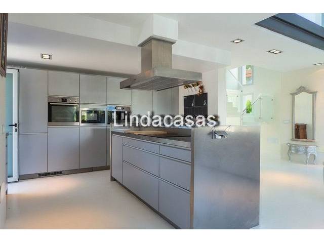 Ground floor: We have the entrance to the living/dining room with open kitchen and cooking island which is furnished in gray tones by the brand Leicht. All household appliances are available such as: hob, oven, double-door refrigerator, coffee machine and dishwasher.