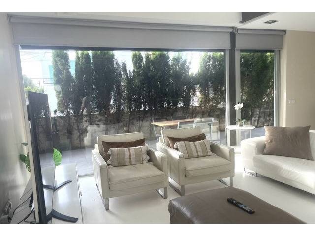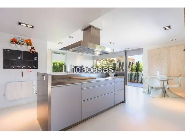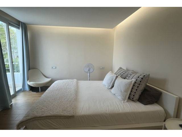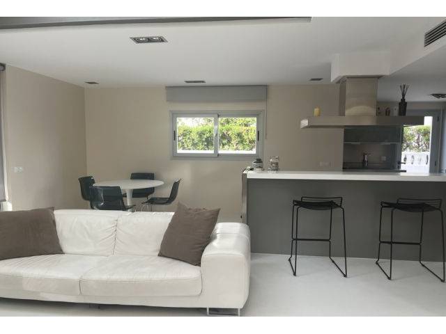 Equipment: Floors in white polished microcement on the ground floor and parquet on the 1st floor, double glazing, electric blinds in the living/dining room, satellite TV dish, internet line currently without fiber (but possible), AC (hot-cold) in all rooms, municipal water, GESA electricity, hot water via electric boiler, drinking water via reverse osmosis system. 100% furnished in an elegant-modern style.
