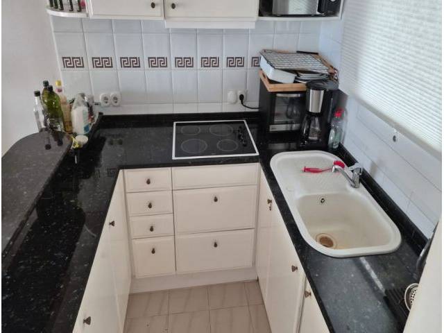 The apartment is located on the 1st floor of a complex with a total of 15 apartments in different residential blocks with a communal pool and a nicely maintained garden with lawn. Own covered and glazed terrace with sea view.
