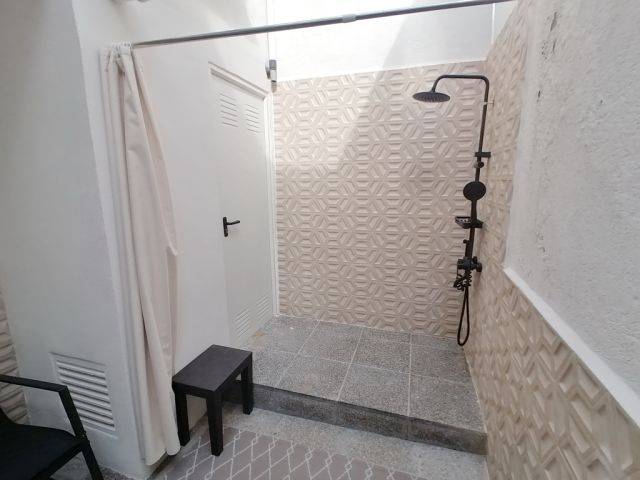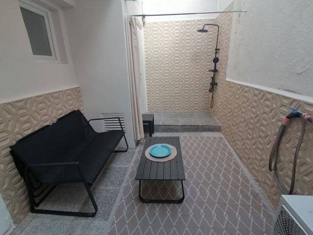 The walled pleasant courtyard of approx. 15 m2 has outdoor furniture, a shower and a small laundry room where an 8 kg washing machine and an electric hot water heater are located. Parking in front of the house.