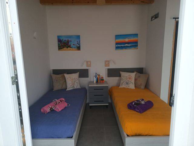 1 floor of 47 m2: 2 bedrooms with wardrobes ( 1 bedroom with double bed 1.50 x 2.00 cm and the other bedroom with 2 single beds of 0.90 x 2.00 cm ) – one with balcony overlooking the courtyard. 1 bathroom with shower.