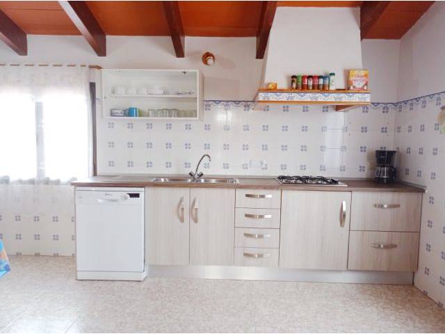 Ground floor: We have the entrance to the living – dining room with terrace exit, large and bright fitted kitchen with open fireplace, gas hobs, refrigerator, electric oven, dishwasher, microwave and additional dining area. Next door a pantry with all kitchen inventory.