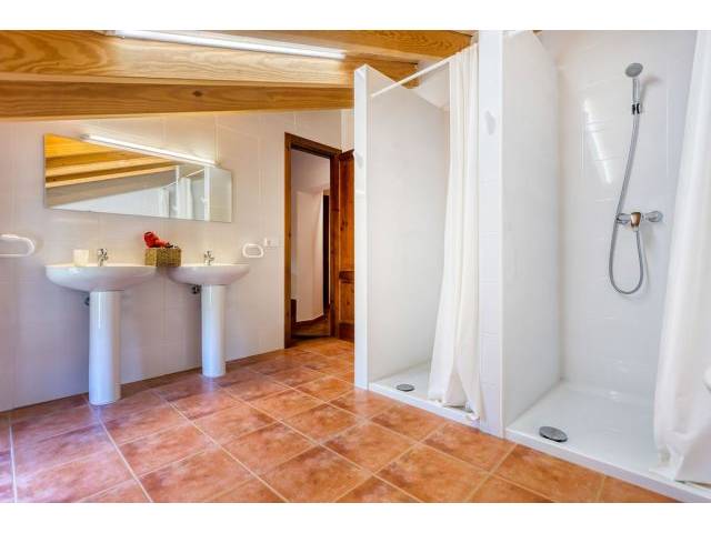 The 4 bedrooms are partly equipped with built-in wardrobes and clothes racks, of which 1 x double bed of 1.50 x 1.80 cm and the others are single beds of 0.90 x 2.0 cm each and are located in 1. and 2 floors distributed and yet another living room on the last floor. The bathrooms are not as usual - because it used to be a kind of youth hostel and so many shower rooms, then again only toilets for men and there are also complete bathrooms with showers.