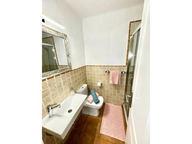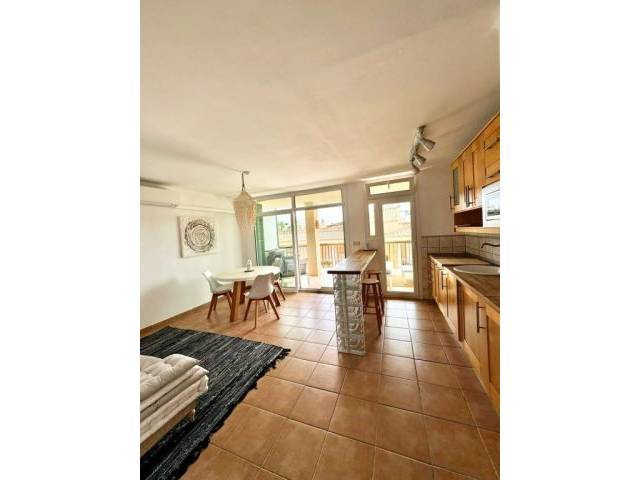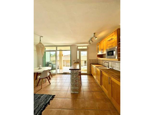 It has a living-dining room with integrated brown fitted kitchen with American counter and terrace exit, 2 bedrooms ( one with 2 single beds and secretary and one with double bed and built-in wardrobe ) and 1 bathroom with shower.