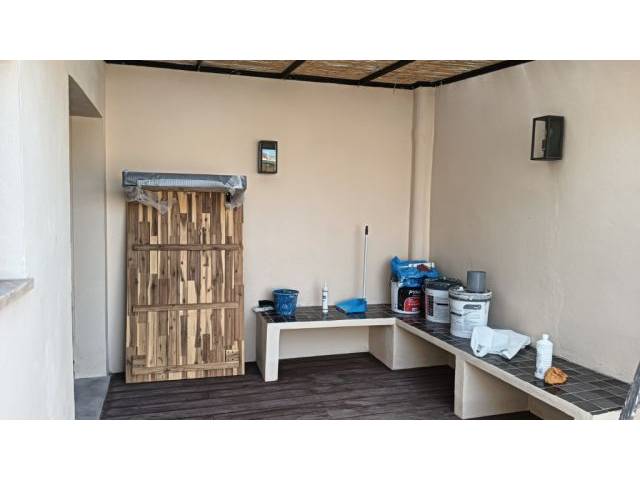 It has a partially covered terrace of about 25 m2 with south orientation and can be accessed from the kitchen or one of the bedrooms and is located at the back of the house with partial views of the sea.