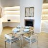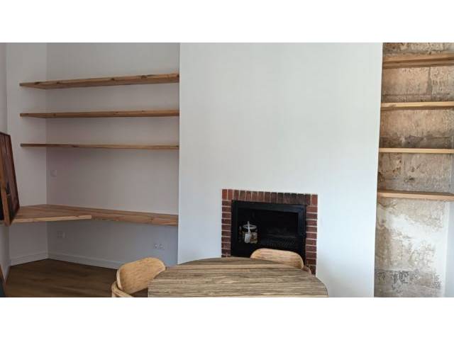 We have direct access to the living-dining room, which is equipped with a wood-burning fireplace. The modern and fully equipped fitted kitchen, including all household appliances and adjoining pantry, is located right next door.
