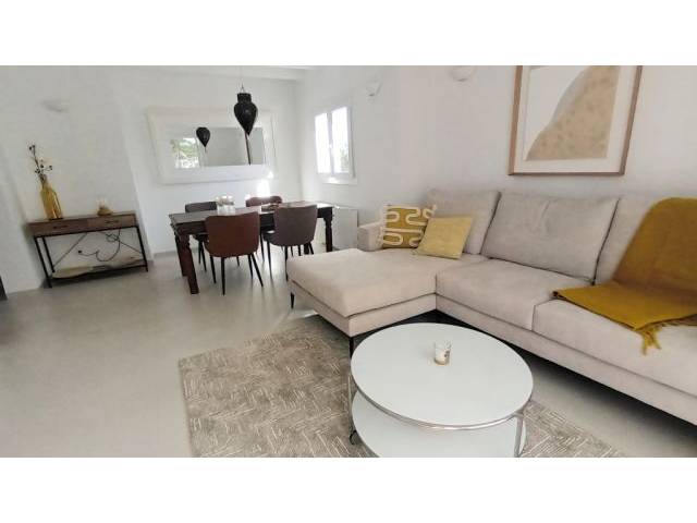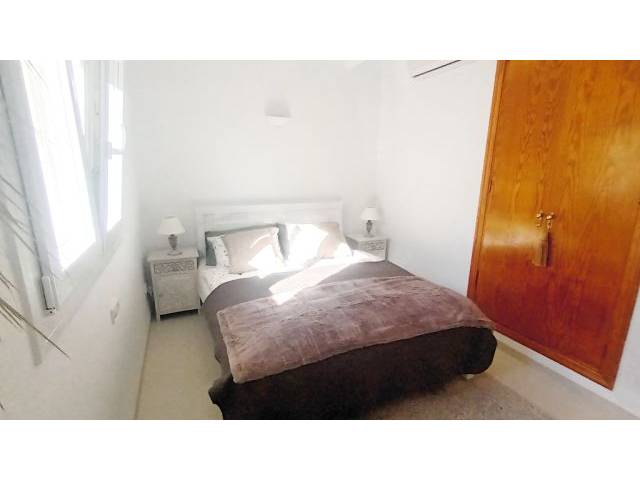 Equipment: Light beige floor tiles, double glazing with tilt-window system, sliding door to the terrace, 2 x electric radiators, 2 electric storage heaters, 3 x air conditioning (hot-cold), electric hot water heater, fiber internet 600 Mb, built-in wardrobes, SAT TV, fly screens on all windows, bright and airy rooms, kitchen equipped with all appliances (ceramic hob and dishwasher, electric oven, refrigerator). Sufficient bed linen and towels available.