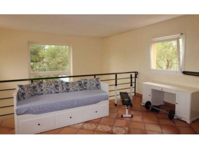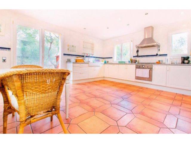 Air conditioning in the large bedroom, wood-burning stove in the living room, hot water via boiler (currently), water softener, reverse osmosis system for drinking water, fitted wardrobes, double glazing, complete fitted kitchen, washing machine, internet connection, satellite TV, dog barriers in the garden, various