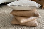For sale are 4 leather cushions ( 1 x white/cream, 3 x light brown ) very soft Conilli leather in the dimensions 45 x 45 cm. Available now....