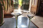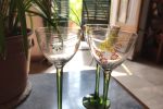 Jarròn decorativo cristal , tono lila-azulado claro. Medidas : altura 41, base 19 . En Felanitx