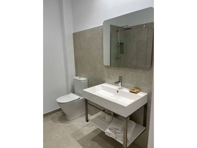 El baño es elegante y práctico, con una ducha espaciosa y acabados de primera calidad. Además, hay un pequeño patio lleno de luz, perfecto para tomar un descanso, disfrutar del aire fresco y relajarse con una taza de café o una copa de vino.