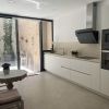 La cocina, contemporánea y funcional, está totalmente equipada con electrodomésticos modernos y todo lo necesario para preparar comidas rápidas y saludables. El dormitorio es tranquilo y confortable, con una cama de alta calidad que asegura un sueño reparador.