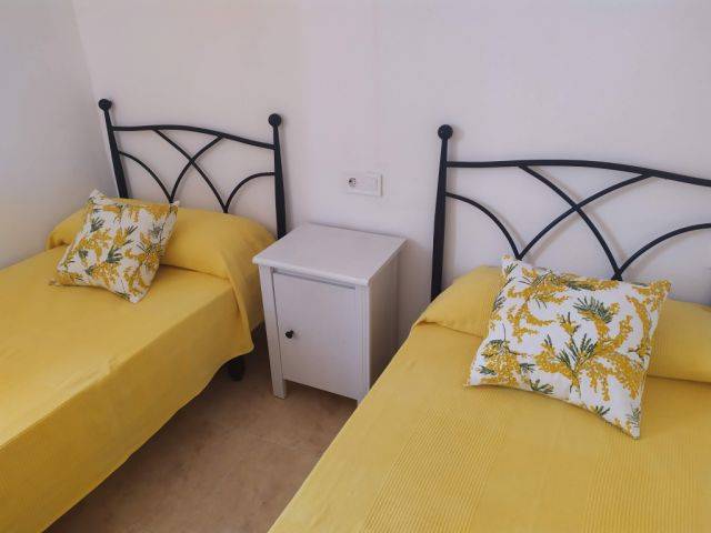 Luminoso salón - comedor, cocina amueblada y equipada con todo electr. Electrodomésticos (excepto lavavajillas), 3 dormitorios (2 dobles y 1 individual) y 2 baños con ducha (uno de ellos en la planta baja - pero sólo agua fría).