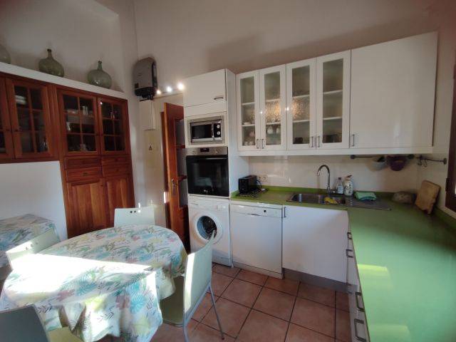 Habitaciones: Entrada a un pasillo donde se encuentra 1 baño con bañera/ducha, 1 dormitorio doble con baño con ducha en suite, salón-comedor con chimenea cerrada, 2 dormitorios dobles, cocina empotrada blanca separada que está equipada con placa de inducción, horno eléctrico, frigorífico, lavavajillas y microondas.
