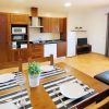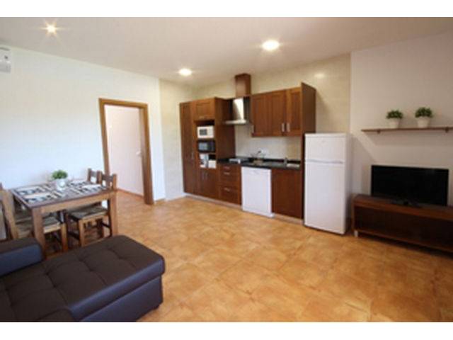 Estancias: Los aptos 1 - 8 (580 €) son casi todos idénticos en la distribución y el mobiliario. Cada uno tiene 1 salón-comedor, 1 dormitorio doble con armario empotrado y 1 baño con ducha. Las cocinas están todas equipadas con placa vitrocerámica, nevera, horno eléctrico y microondas, y además con ropa de cama y toallas. Sin embargo, solo se alquilan 4 de ellos para garantizar que se respete el descanso invernal y que los inquilinos se traten con respeto.