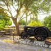 La entrada a la propiedad es un camino decorado con árboles a ambos lados que conduce a las casas típicas mallorquinas.