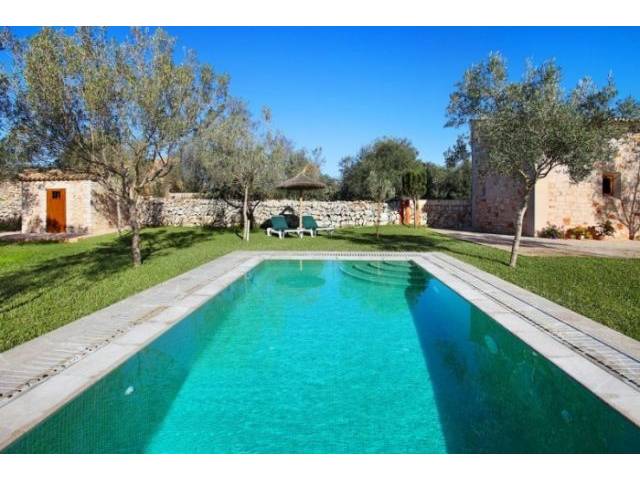 Ubicación y alrededores: Se encuentra a aprox. 30 m del pueblo junto a la carretera, sin embargo es casi imperceptible debido a las muchas plantas y árboles que se han plantado. A la costa aprox. 5 km (S Almunia y Cala Llombards) y a Palma aprox. 50 km.