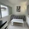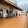 La terraza parcialmente cubierta de aprox. 30 m2 tiene un pequeño lavadero con lavadora y secadora. También hay una mesa de comedor con tumbonas tipo Sun Lounges y una gran barbacoa de gas portátil, así como una sombrilla. La otra terraza, pero descubierta, de aprox. 15 m2, tiene acceso a ambos dormitorios.