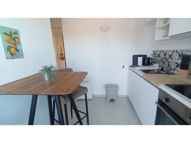 Equipamiento: Baldosas de suelo beige claro, doble acristalamiento con sistema de ventana oscilante, puerta corredera hacia la terraza, 2 radiadores eléctricos, 2 calefacciones eléctricas de acumulación, 3 aires acondicionados (frío-calor), calentador de agua eléctrico, internet de fibra de 600 Mb, armarios empotrados, SAT TV, mosquiteras en todas las ventanas, estancias claras y aireadas, cocina con todos los electrodomésticos (placas vitrocerámicas y lavavajillas, horno eléctrico, frigorífico). Sábanas y toallas suficientes disponibles.