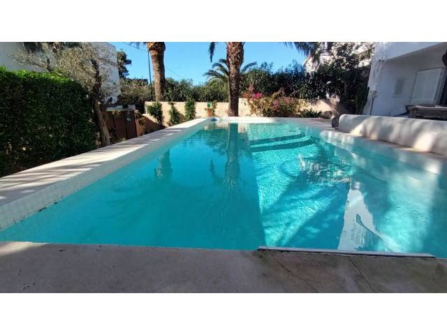 Exterior: 1 terraza descubierta desde la cocina con acceso por escalera al jardín, 1 terraza cubierta adicional con vista parcial al mar desde el salón-comedor y una maravillosa gran terraza en la azotea con todo el confort para sentarse y tumbarse (con protección solar parcial). Acceso desde la escalera exterior. Lavandería común con lavadora y secadora en planta baja - detrás de la casa. Se puede utilizar la ducha exterior de agua caliente y la piscina de 2,50 m x 7 m.
