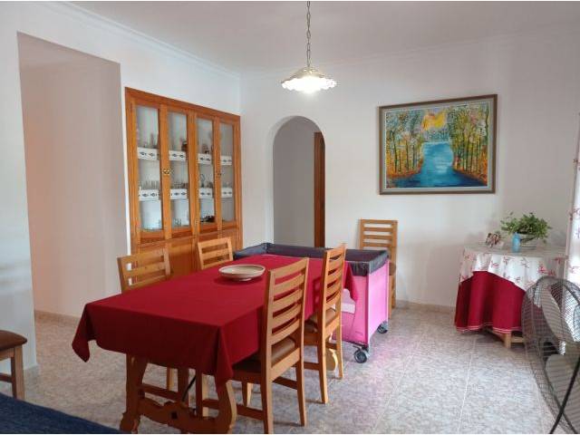 Planta baja: Tenemos la entrada al salón – comedor con salida a la terraza, amplia y luminosa cocina amueblada con chimenea, encimeras de gas, frigorífico, horno eléctrico, lavavajillas, microondas y zona de comedor adicional. Al lado una despensa con todo el inventario de cocina.