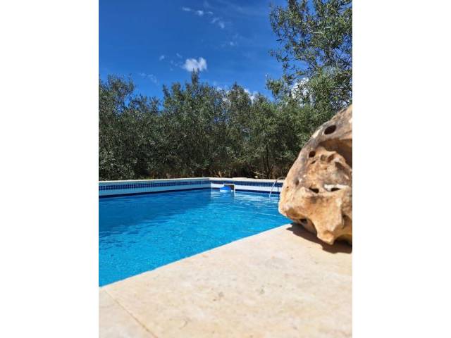 La finca incluye un jardín celestial y bien cuidado, con muchos árboles frutales (limones, naranjas, moras, granadas, uvas, higos, aloe vera y el sabroso níspero japonés, olivos), etc.