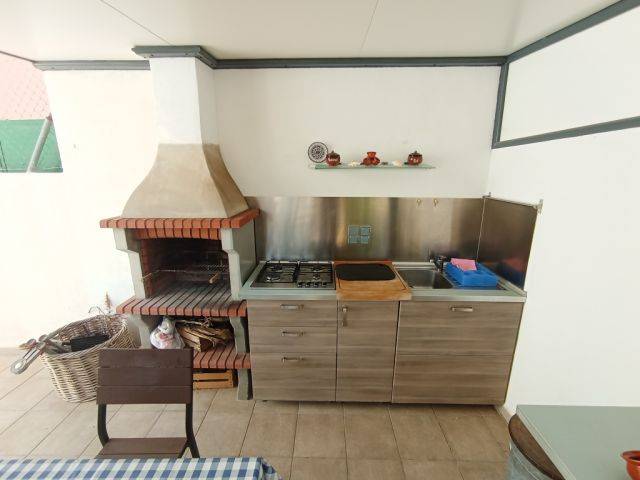 La terraza delantera tiene un toldo retráctil y la terraza trasera cubierta es bastante amplia y tiene una pequeña cocina de verano con estufas de gas, barbacoa y ducha exterior, 1 baño exterior con ducha, lavadora, secadora, caldera de agua caliente.