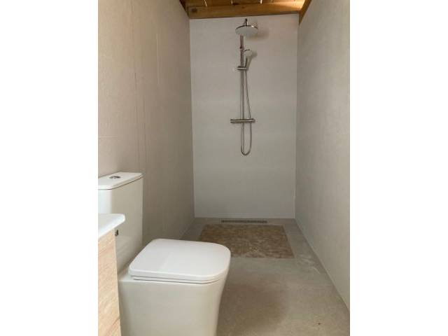 Equipamiento: Suelos de gres porcelánico gris, doble acristalamiento, chimenea de leña y 1 x AC (frío - calor) en el salón, internet de Movistar Fusión 4GB, TV SAT, electricidad GESA, agua de la ciudad y cisterna de lluvia, agua caliente a través de caldera eléctrica de 100 l