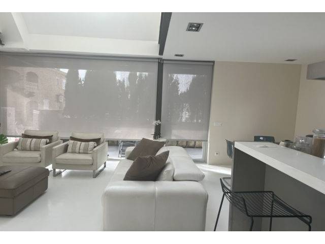 Equipamiento: Suelos en microcemento blanco pulido en la planta baja y parquet en la 1ª planta, doble acristalamiento, persianas eléctricas en el salón-comedor, antena parabólica para TV, línea de internet actualmente sin fibra (pero posible), AC (frío-calor) en todas las estancias, agua municipal, electricidad GESA, agua caliente mediante termo eléctrico, agua potable mediante equipo de ósmosis. Amueblado al 100 % en estilo elegante-moderno.