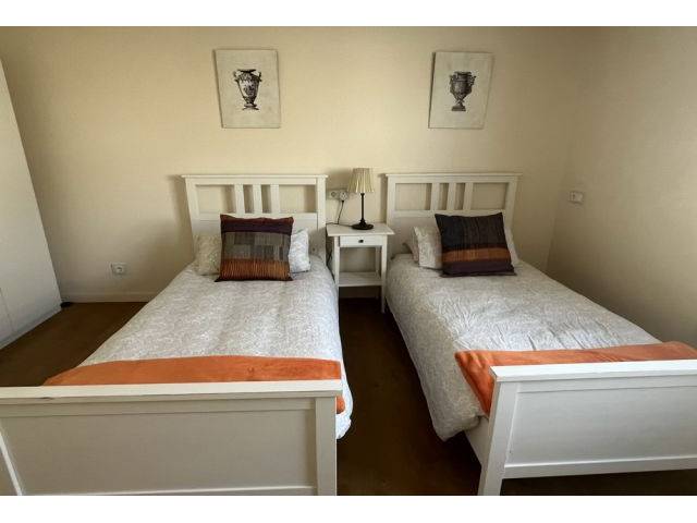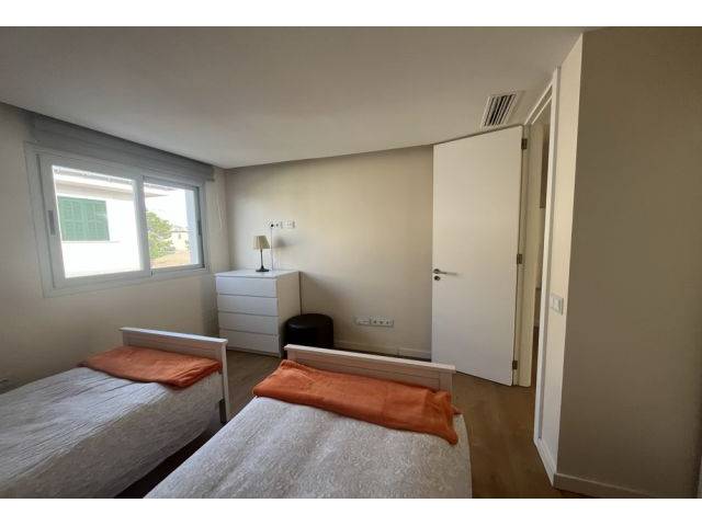 Primera planta: 3 dormitorios dobles (1 de ellos con vestidor), calefacción de pared a bioetanol y terraza en forma de L con vistas a la piscina y al mar. 1 baño con ducha.