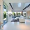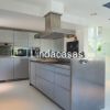 Planta baja: Tenemos la entrada al salón-comedor con cocina abierta y isla de cocina, que está amueblada con la marca Leicht en tonos grises. Todos los electrodomésticos están disponibles como: placa, horno, frigorífico de doble puerta, cafetera y lavavajillas.