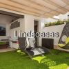 Tiene 2 entradas (una con una pequeña puerta y otra para la entrada del garaje o para aparcar en la parcela), una terraza cubierta en la entrada del chalet, una terraza cubierta con toldo junto al jardín con césped artificial y piscina en la parte trasera, y dos terrazas descubiertas en la 1ª planta (una de ellas con vistas al mar).