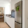 Primera planta: Tenemos un salón-comedor con una cocina abierta moderna equipada en la cocina que está equipada con 2 vitrocerámicas, horno eléctrico, nevera, lavavajillas, microondas y lavadora. 1 aseo.