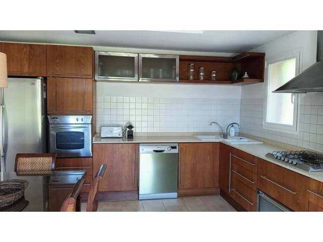 Desde el salón se accede a la cocina moderna equipada con zona de comedor, que dispone de placas de gas, horno eléctrico, frigorífico de doble puerta, lavavajillas y microondas así como inventario completo y utensilios de cocina. 1 dormitorio doble.