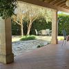 Hay una gran terraza cubierta orientada al sur con acceso al salón y la cocina. Alrededor de ella se encuentra el jardín cuidadosamente diseñado.