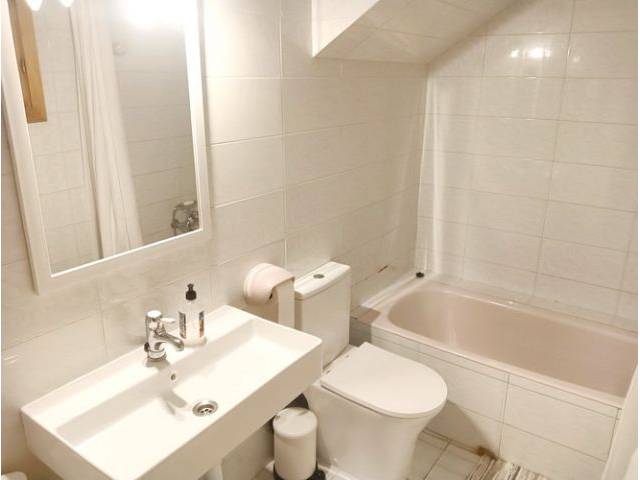 Un pasillo conduce a 1 dormitorio doble con dormitorio doble y armario empotrado, 1 dormitorio con cama individual y 1 baño con bañera/ducha, lavadora y termo eléctrico.