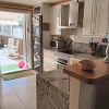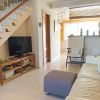 Planta baja: Tenemos la entrada principal al salón con una escalera que conduce a la 1ª planta y una preciosa cocina independiente amueblada con barra americana (equipada con vitrocerámica, horno eléctrico, nevera, lavavajillas y microondas, así como un completo inventario de cocina). También hay 1 baño con ducha.