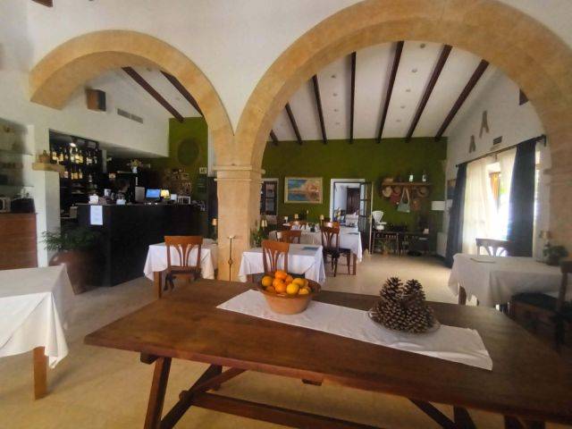 El restaurante - comedor - que está equipado con grandes ventanales y 3 hermosos arcos - se divide en 2 áreas con un total de 12 mesas, 24 sillas y 2 salidas de terraza. Estas 2 zonas de terraza cubierta con un total de 12 mesas y 30 sillas de un total de 80 m2 están orientadas al sur y al este