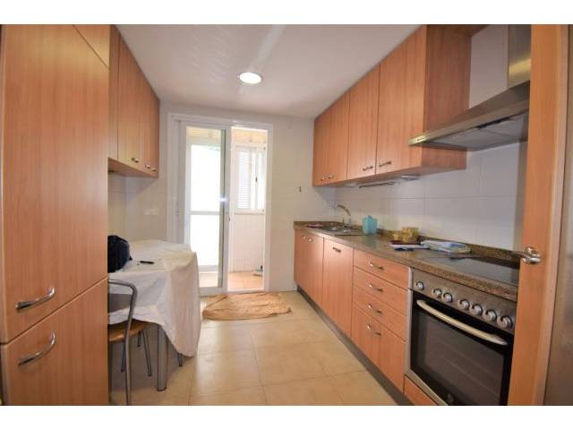 Se alquila sin muebles, excepto la cocina que está amueblada y equipada con campana, vitrocerámica, horno y lavavajillas.