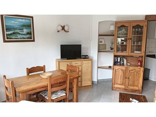 Equipamiento: Acristalamiento simple, persianas de madera verdes, canales de TV españoles y antena satélite, 3 x AA (frío - calor) en los 2 dormitorios y en el salón-comedor, posibilidad de línea de Internet, electricidad GESA, agua municipal, agua caliente mediante termo eléctrico. 100% amueblado y equipado con la posibilidad de alquilarlo también parcial o sin amueblar.