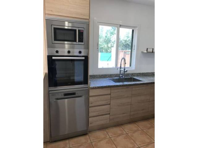 Casa principal con cocina amueblada, salón, 2 dormitorios, 1 baño, aseo de invitados, terraza y azotea.