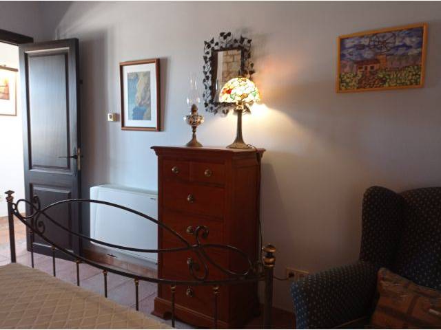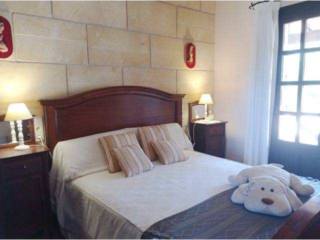 Equipamiento de la casa principal: Suelos rústicos y de azulejos color crema, persianas de madera verde oscuro, muros exteriores de piedra natural de aprox. 50 cm que contribuyen a un buen clima interior, doble acristalamiento, puertas y ventanas de teca, agua de pozo de buena calidad y agua municipal para la casa (con un grifo para cambiar) y también agua municipal/depósito para el jardín, agua caliente mediante un termo eléctrico de 150 l, filtro de ósmosis para agua potable en la cocina, estancias luminosas, TV por satélite y antena de TV española, línea de internet por Conecta Balear de 100 MB, 5 x AC (calor – frío), chimenea cerrada.