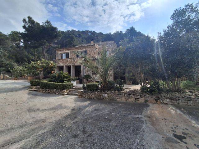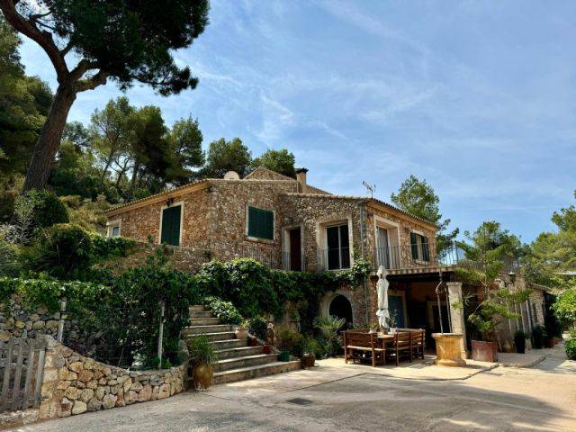 Finca de 2 plantas, encantadora y de ensueño, en una ubicación de cuento con piscina y AC, situada en pleno bosque cerca de Es Carritxo - Felanitx. Impresionantes vistas al monasterio de San Salvador.