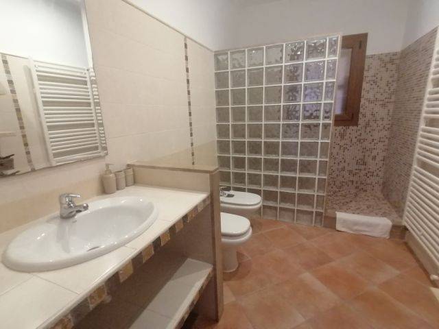 Equipamiento: Doble acristalamiento, termo eléctrico, calefacción central por gasóleo, SAT TV, chimenea abierta en el salón, agua municipal, electricidad Gesa, vigas de techo visibles, armarios empotrados, internet. Amueblado de forma moderna – también puede alquilarse parcialmente amueblado.