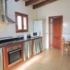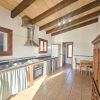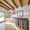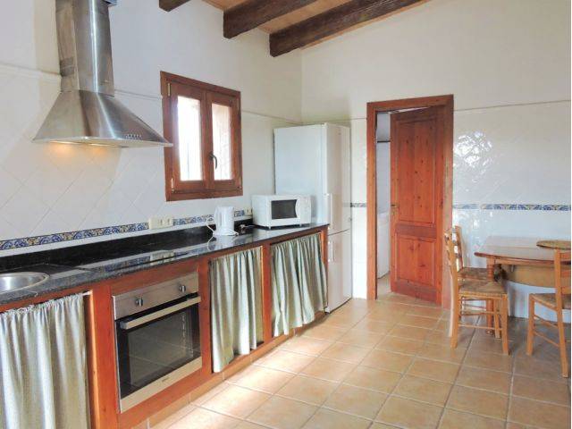 La acogedora cocina equipada está mantenida en estilo mallorquín - con muebles bajos enlucidos con cortinas, bonitos armarios rústicos para la vajilla y una despensa combinada con electrodomésticos modernos (incl. lavavajillas).