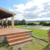 En toda la anchura de la zona de estar se ha construido una terraza cubierta de aprox. 40 m2 - con vistas a la piscina y bonitas vistas abiertas. Hay una caseta de jardín para almacenamiento y un carport para 2 coches. El jardín es de bajo mantenimiento y está diseñado al estilo típico de la zona. El acceso a la finca es fácil a través de un camino asfaltado.