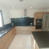 Detrás de ella seguía el amplio y luminoso salón-comedor de aprox. 80 m2 y a la izquierda la funcional cocina amueblada en color negro-marrón con los electrodomésticos de Siemens como vitrocerámica, lavavajillas, horno eléctrico, etc. Junto se encuentra el lavadero con lavadora, 1 aseo de cortesía y detrás de él un amplio garaje de 72 m2.